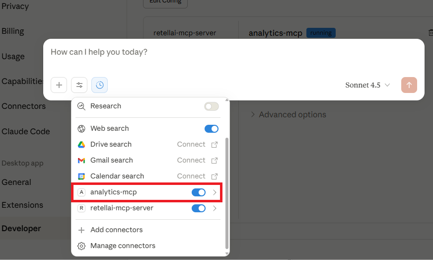 Before creating your GA4 Assistant, you must have the Google Analytics MCP server successfully connected to Claude Desktop.
