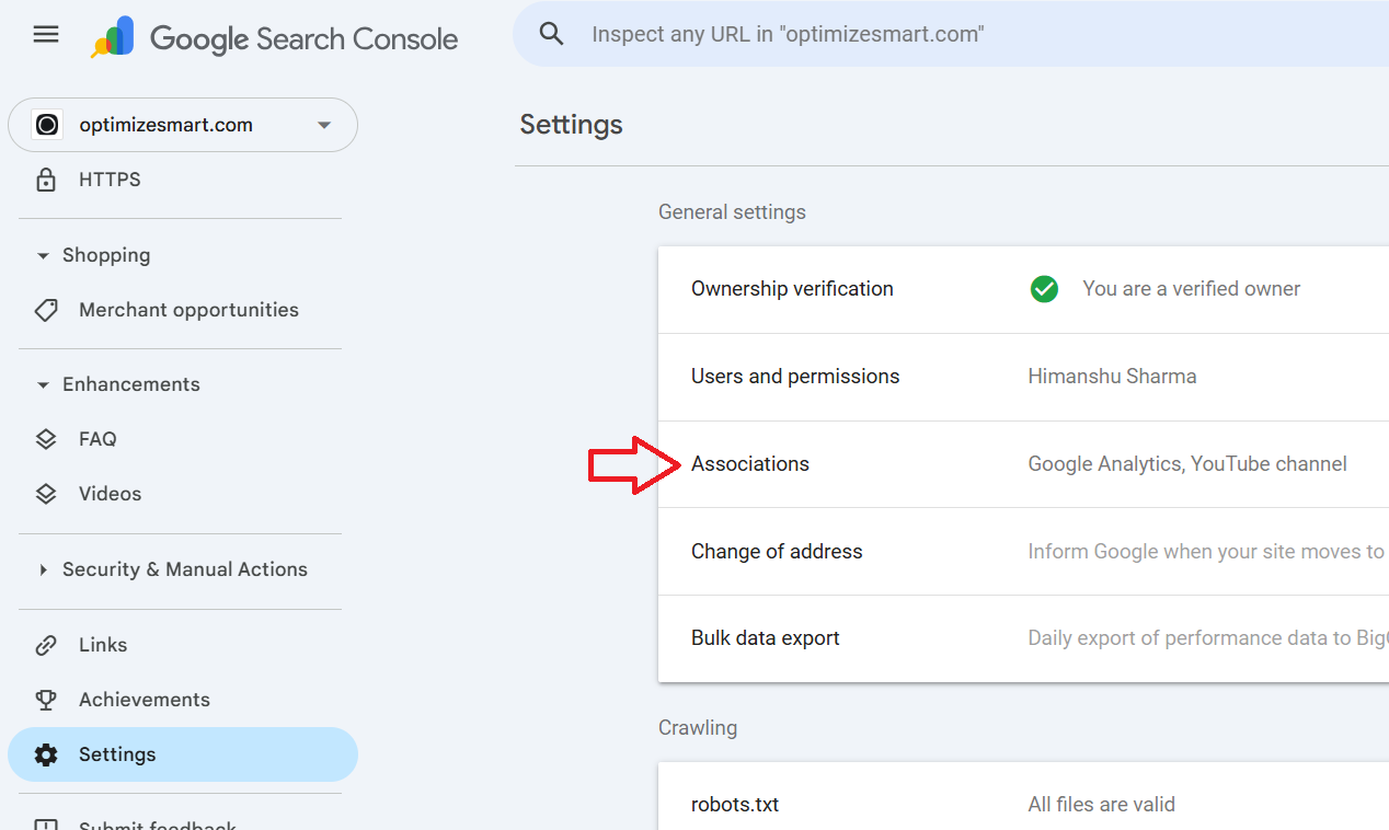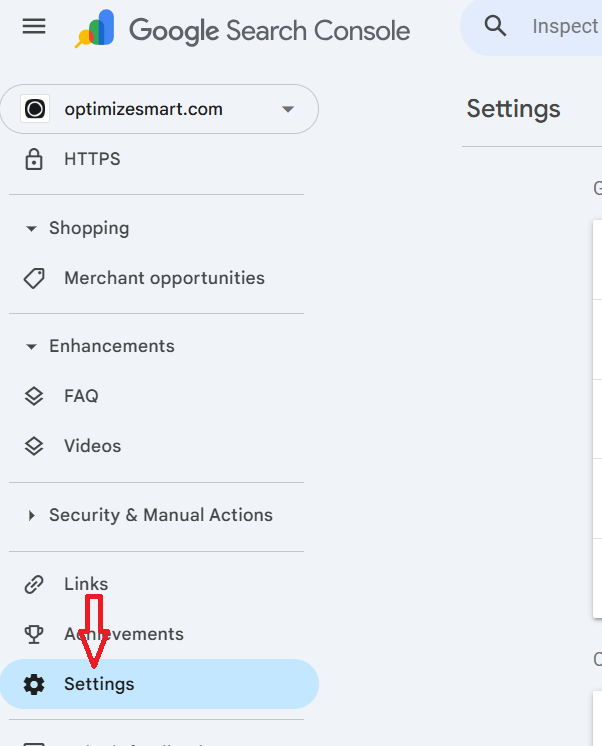 Step-5: Login to your Google Search Console account and then click on the ‘Settings’ link: