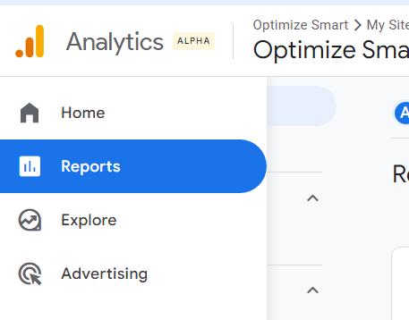 - Click on the ‘Reports’ link from the left-hand side navigation menu in your GA4 property.