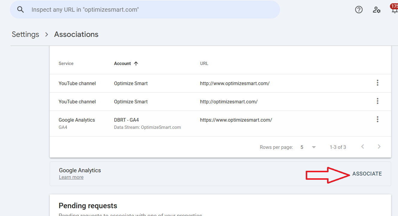 Step-7: Click on the ‘Associate’ button next to ‘Google Analytics’: