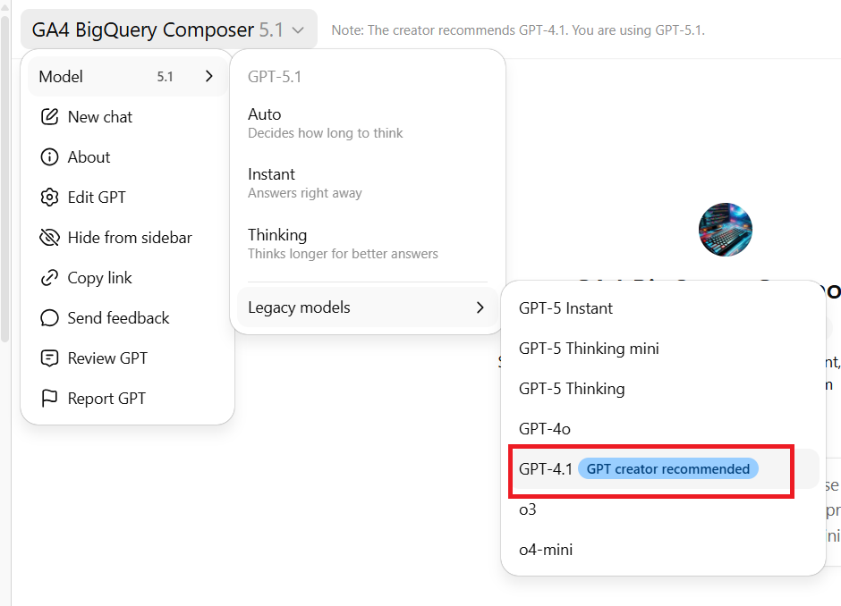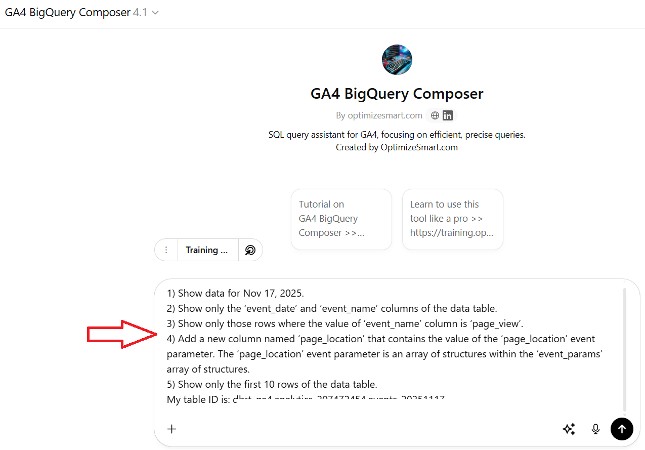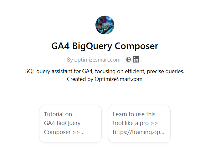 GA4 Biguery Composer is a custom ChatGPT I created to generate production-ready SQL for GA4 BigQuery from natural language.