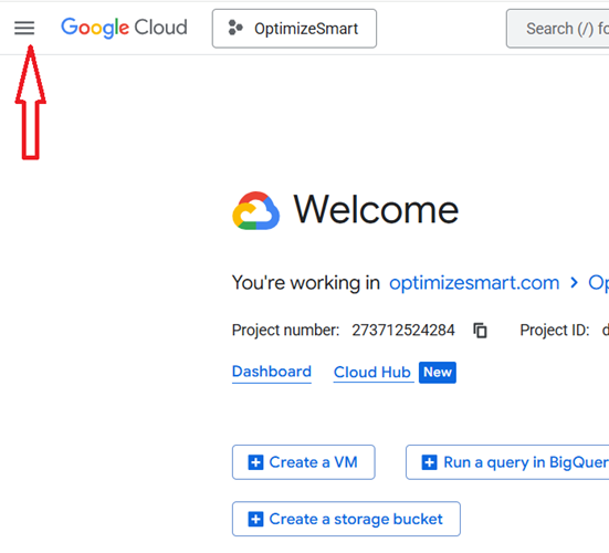 - While logged into your Google account, navigate to Google Cloud Platform at https://console.cloud.google.com/
