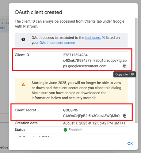 Your OAuth Client is created:
