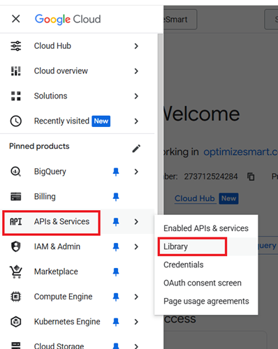 #3.2 Navigate to APIs & Services > Library.