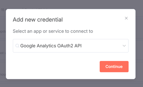 Your ‘Google Analytics’ node in n8n won’t work without first connecting your Google Analytics account to your n8n account.