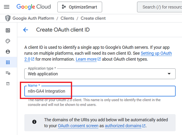 #4.4 Name your credentials. For example ‘n8n-GA4 Integration’.