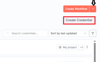 #4.6 Navigate to your n8n account, click on ‘Create Credentials’ from the drop-down menu: