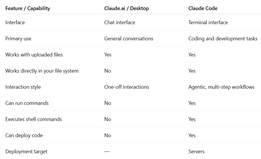 Claude Desktop is meant for high-level planning and research. Whereas, Claude Code is more suitable for implementation and code editing.