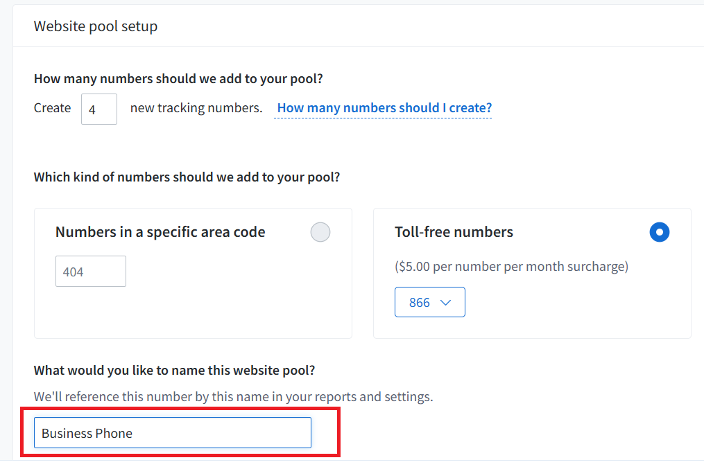 #12 Enter your website pool name (i.e. how you want the tracking numbers to be referred to in reports). You can name the website pool after a company name for easy identification if you manage multiple clients.