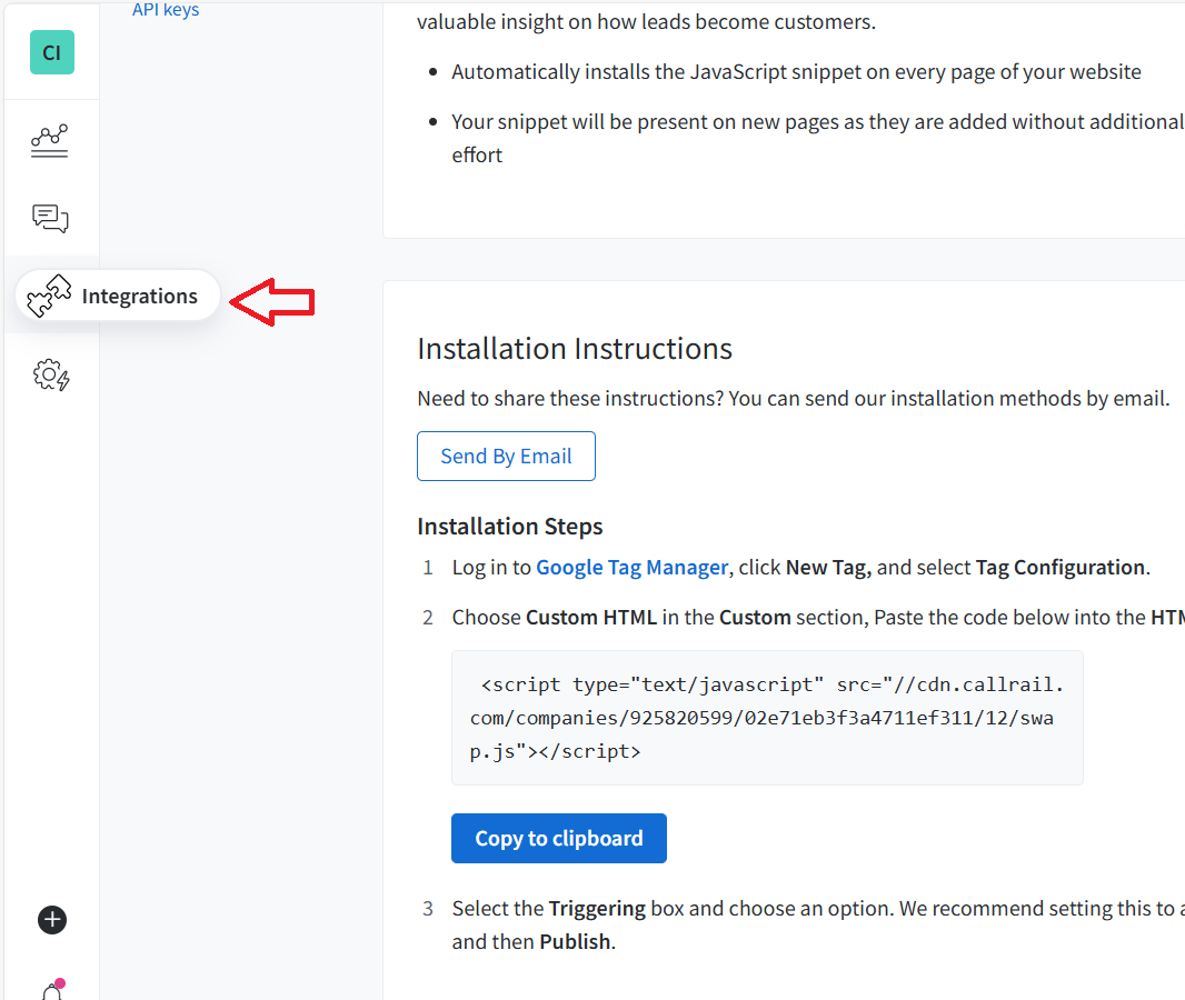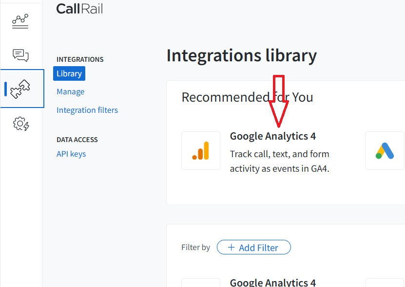 #22 Click on ‘Integrations’ from the left menu to link your call tracking account to your GA4 property so that you can send the phone call tracking data to your GA4 property.