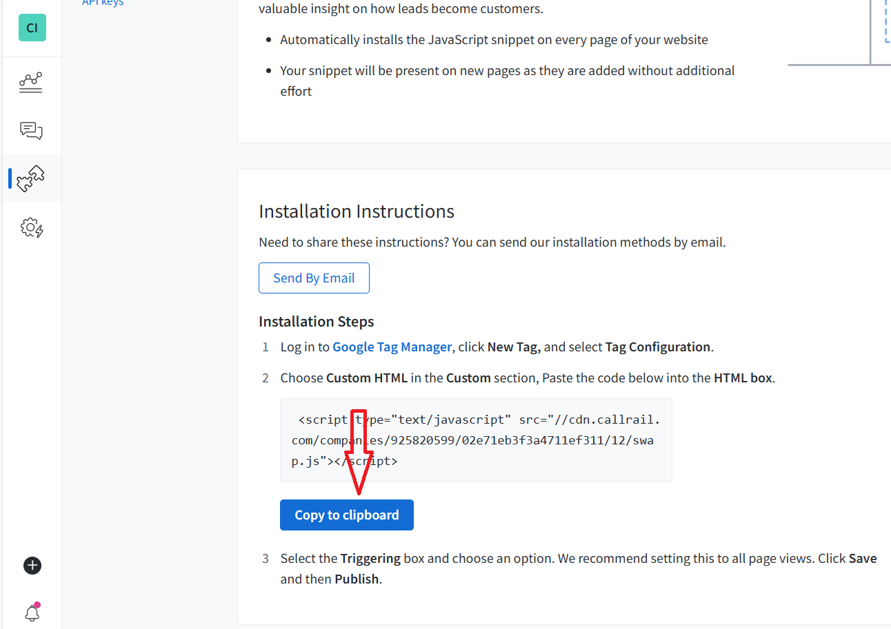 #18 Scroll down and click on the button ‘Copy to Clipboard’ to copy the code snippet: