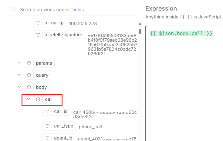 For example: {{ $json.body.call.call_id.base64Decode() }}