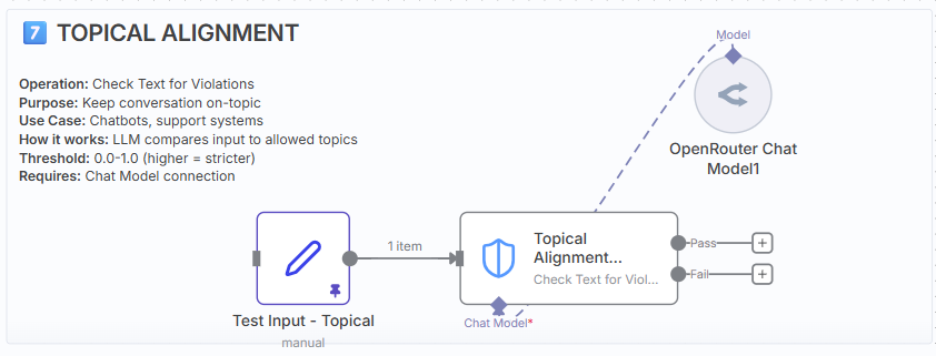 - Jailbreak, NSFW, Topical, Custom LLM. Each check = 1 API call to your connected Chat Model.
