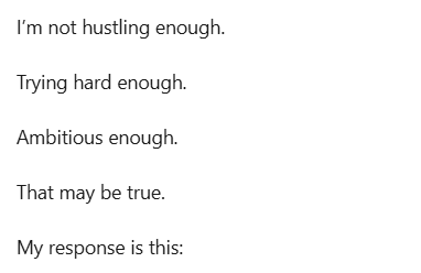 Example: I believe in growth. I believe in discipline. I believe in consistency. I believe in purpose.