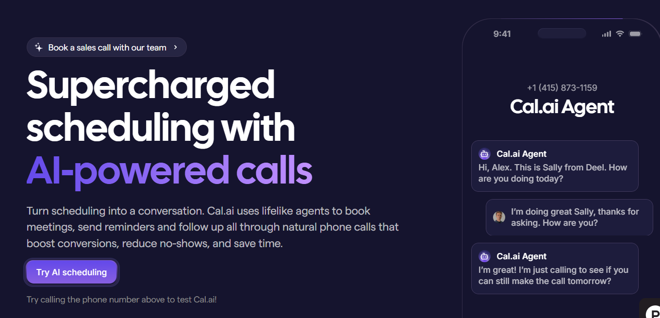 One major advantage of Cal.com over tools like Calendly is Cal.ai, a built‑in AI phone agent tightly integrated with Cal.com Workflows.