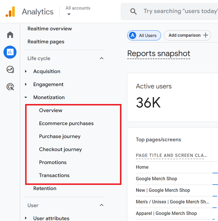 Introduction to GA4 Ecommerce Reports (Monetization Reports).